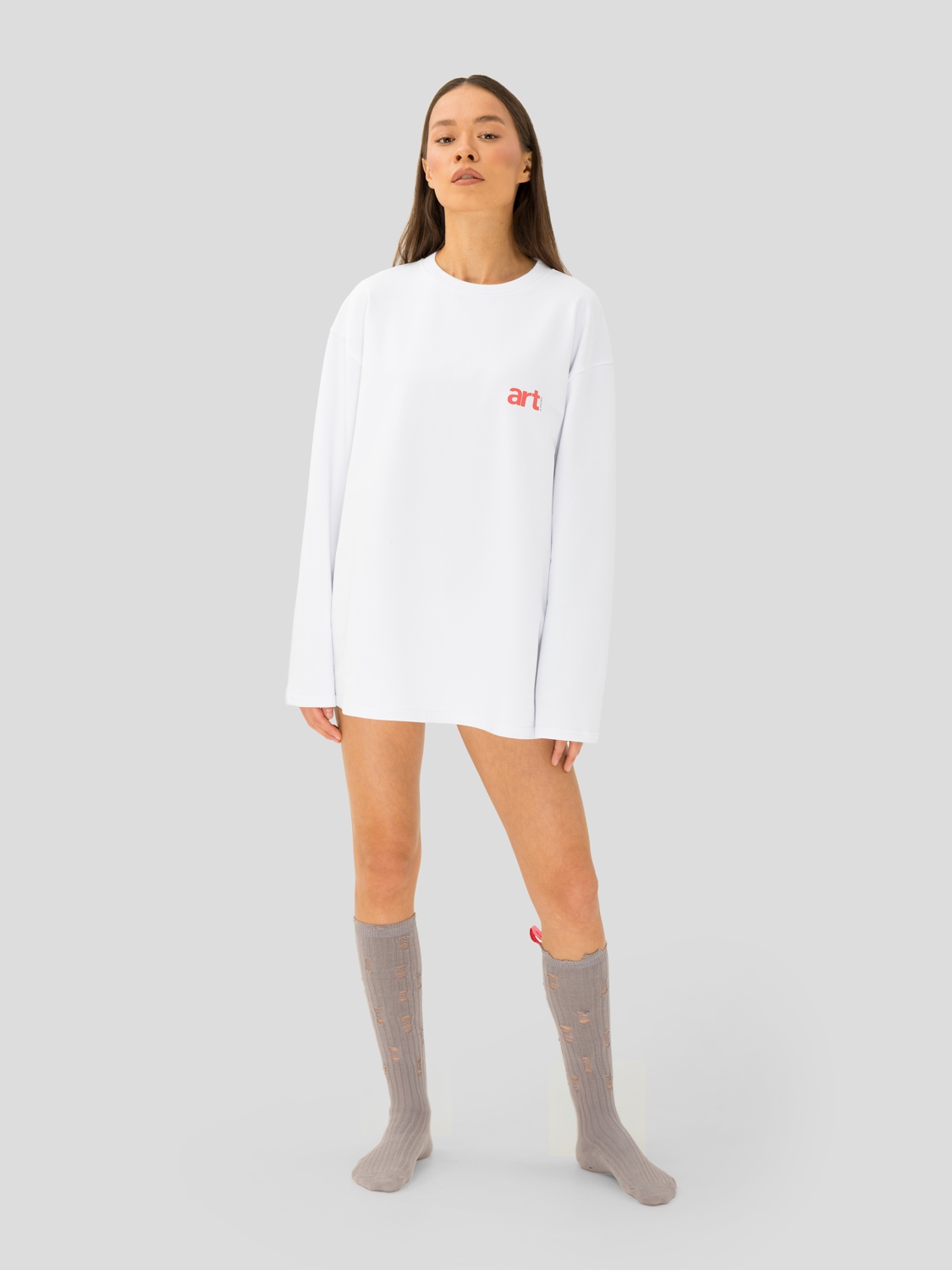Лонгслив OVERSIZE с принтом Art is Therapy - сшит из качественного плотного хлопка, Футер 2-х нитка, качество Penye Compact, 260 г/м. Особенность модели в её расклешенной горловине придающей неповторимый мягкий стиль и комфорт.