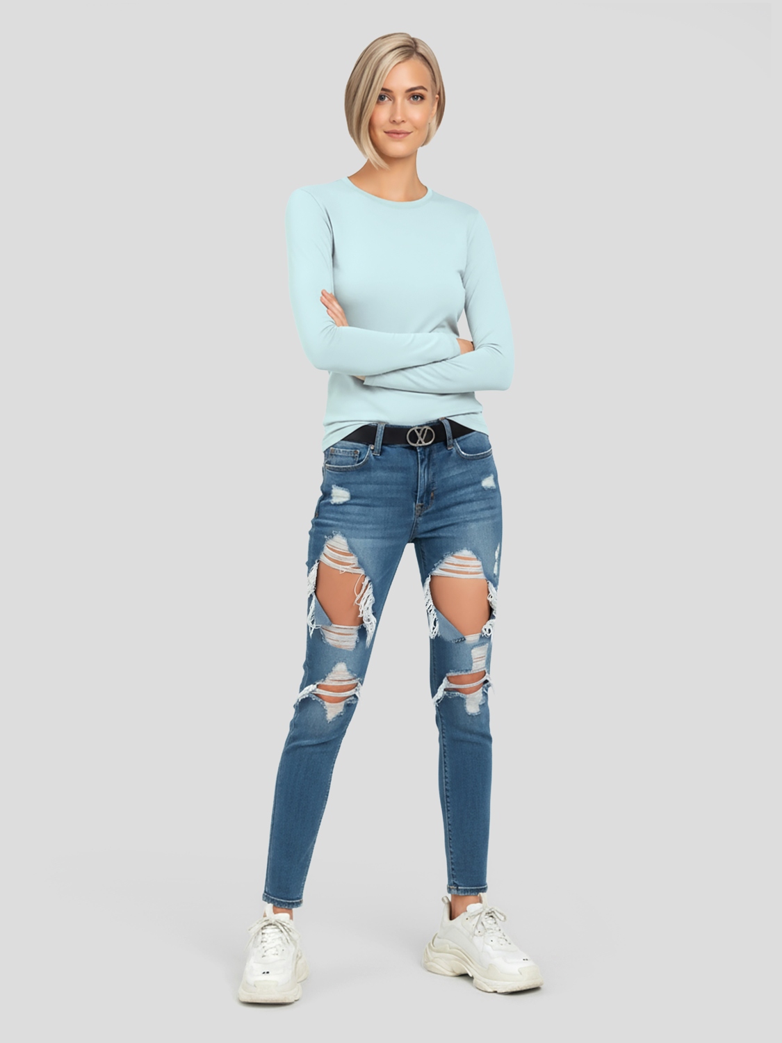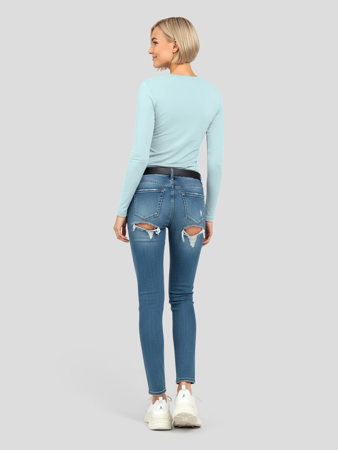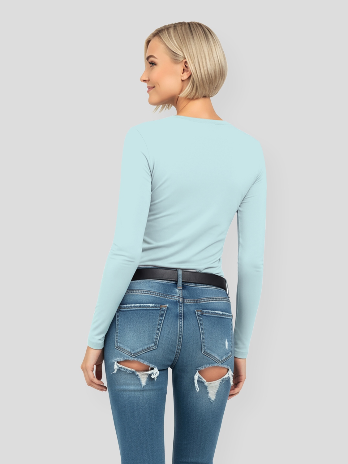 Уютный базовый женский лонгслив сшитый из высококачественного хлопкового материала качества Пенье. Лонгслив сохраняет свою форму даже после многократных стирок, на материала не образовываются катышки. Крой приталенный, вырез горловины О-образный, сама горловина выполнена из основного материала лонгслива, цвет небесно-голубой.